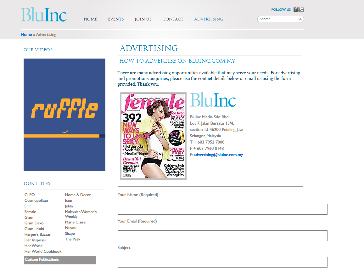 Managing Bluinc Media megazine’s official website, including maintenance and campaigns. The web magazine includes SEVENTEEN, MEN’S HEALTH and many others.